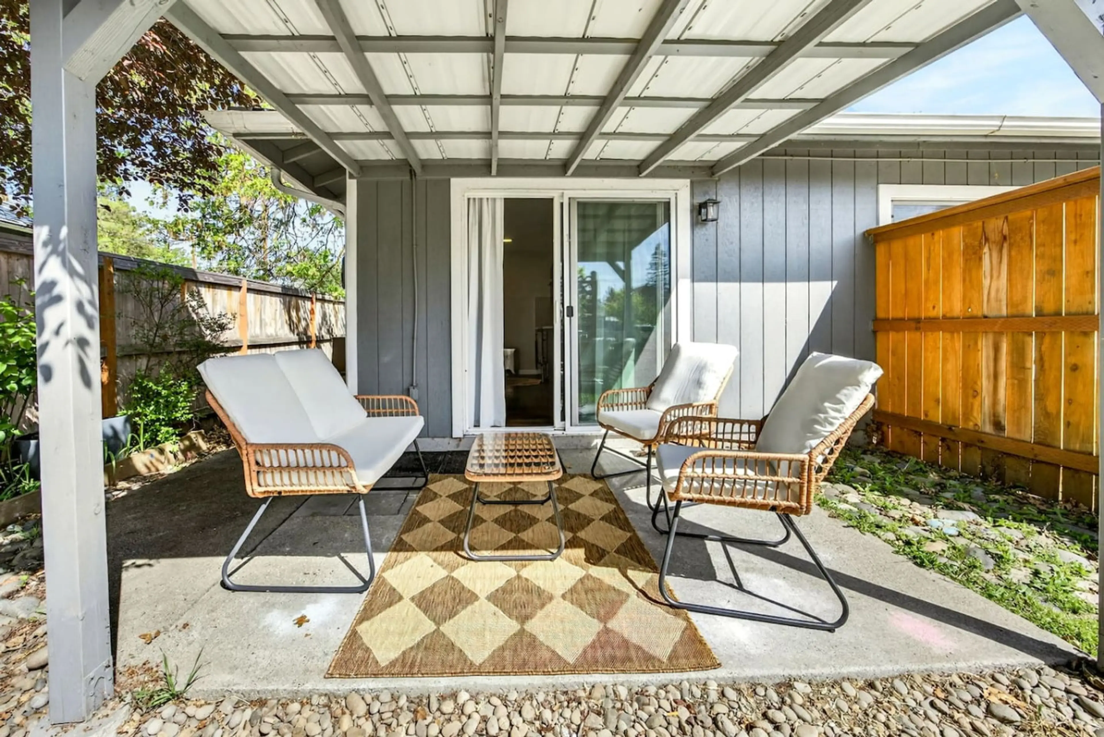 Perfect for families or groups, this full duplex in Grants Pass offers 4 bedrooms and 2 bathrooms across two private units. Sleep easy with 2 kings, 1 queen, and 1 full bed. Each unit features its own fenced private yard, full kitchen and comfy living room with large TV. Enjoy an additional exterior...