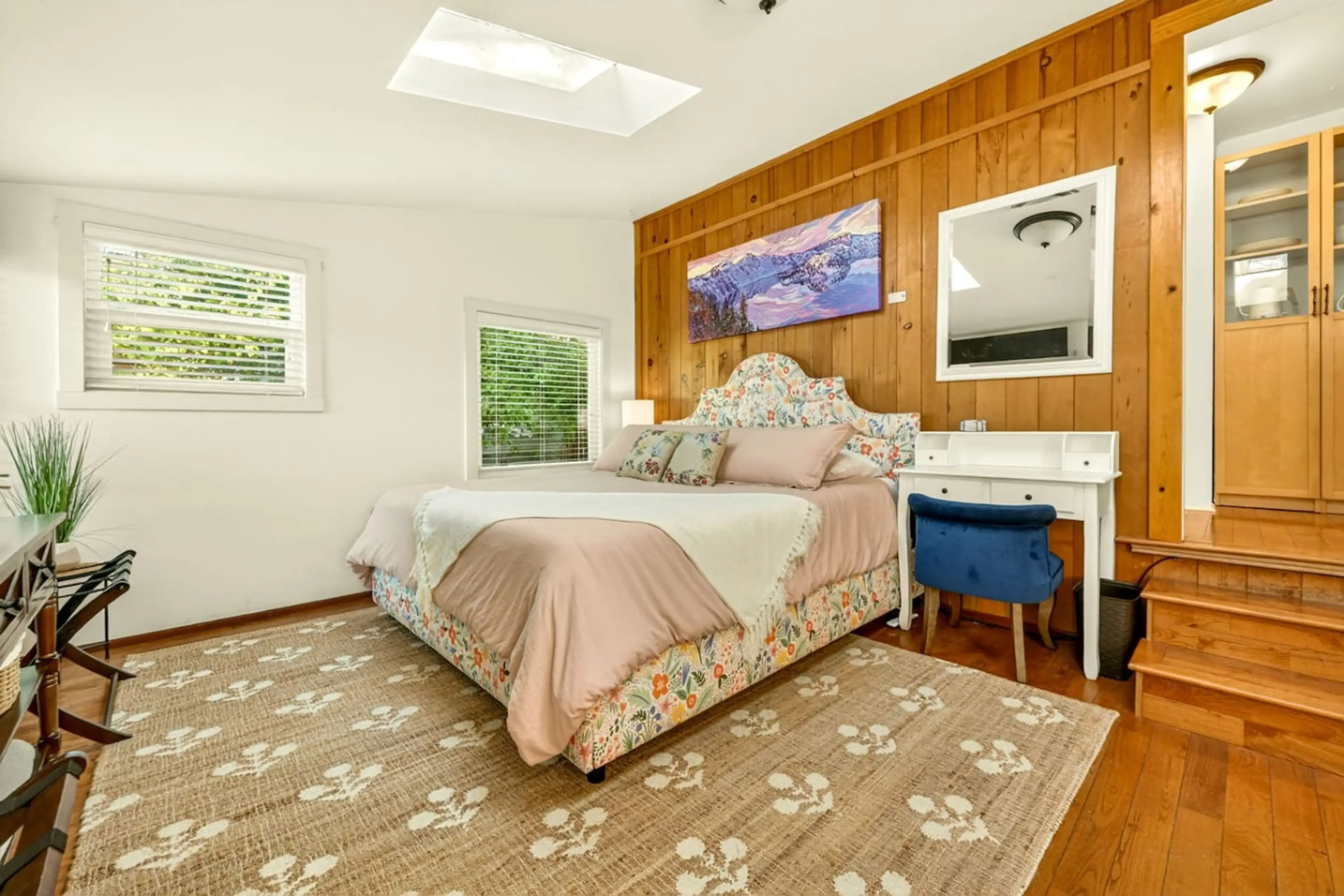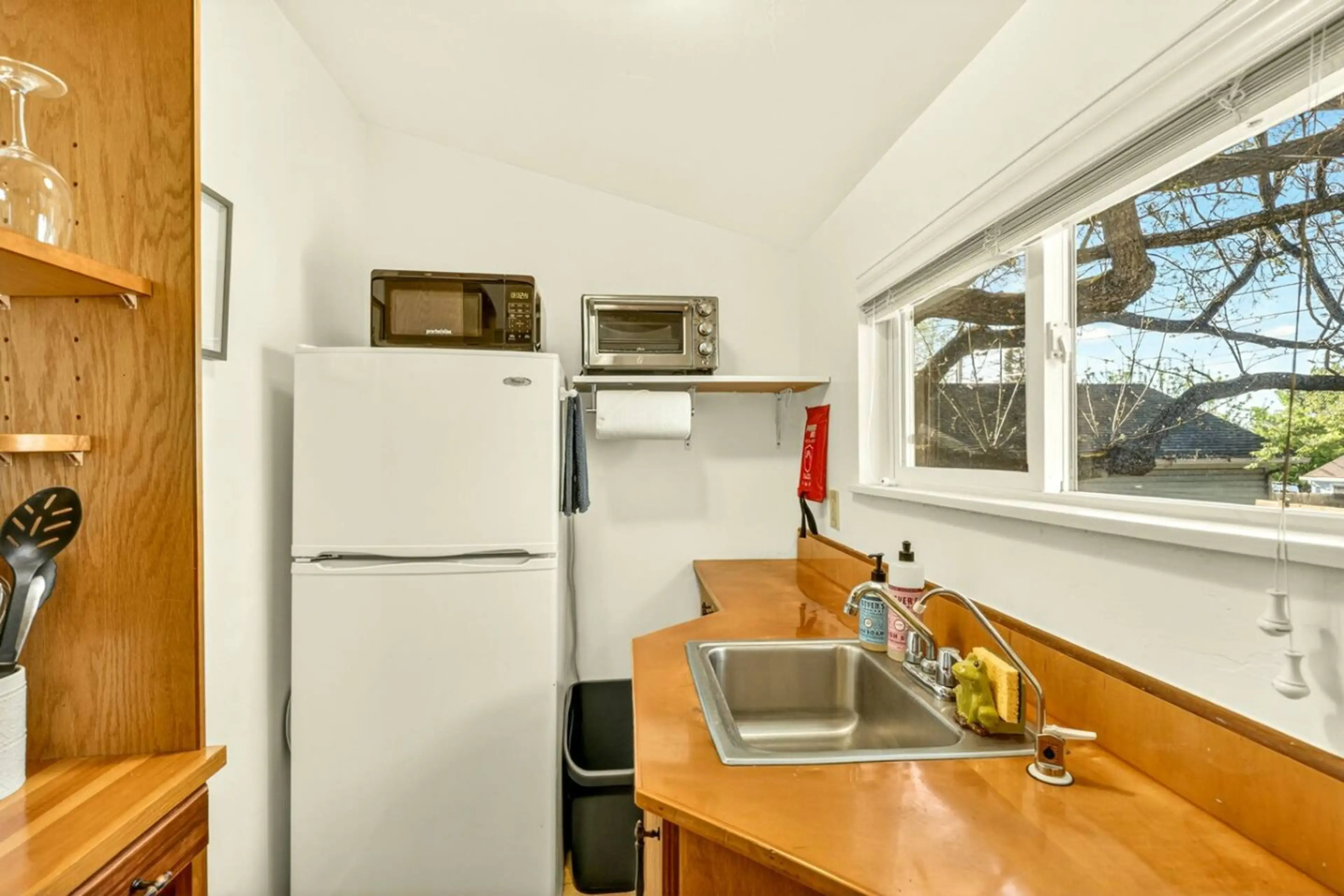 Welcome to this bright, spacious studio for two just steps from downtown Ashland & OSF. Sink into a comfy king bed with TV, enjoy meals at the bistro table, & cook easy favorites in the well‑equipped kitchenette (toaster oven + hot plate; no full oven). You'll also have a full bathroom with shower. ...