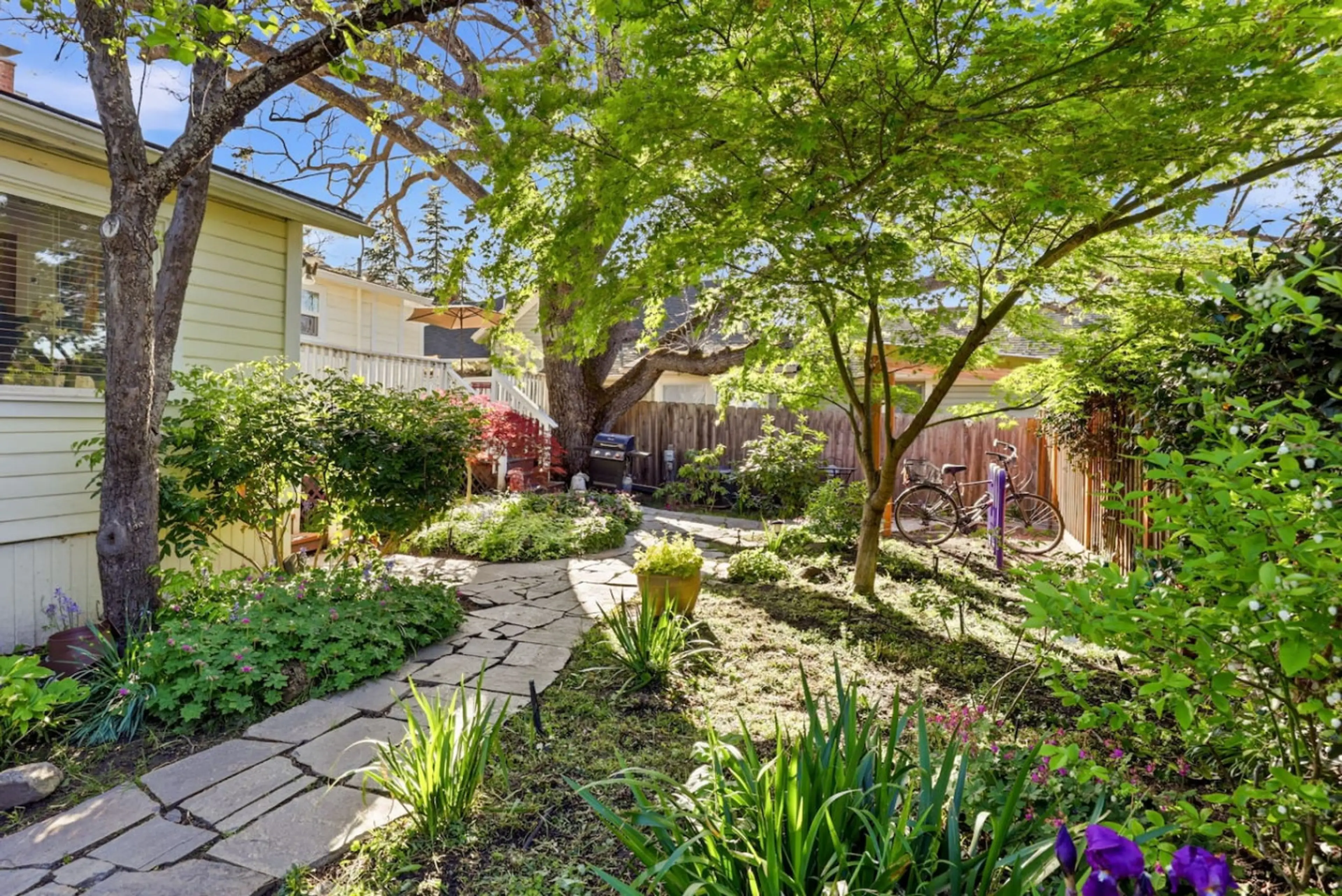 Settle into Whimsy on B, with two inviting guest spaces booked together, just steps from downtown Ashland and OSF. Sleeping up to six, the spacious 2‑bedroom front unit features king and queen bedrooms, a cozy living room with TV, a full kitchen and bathroom, & laundry. The separate light-filled st...